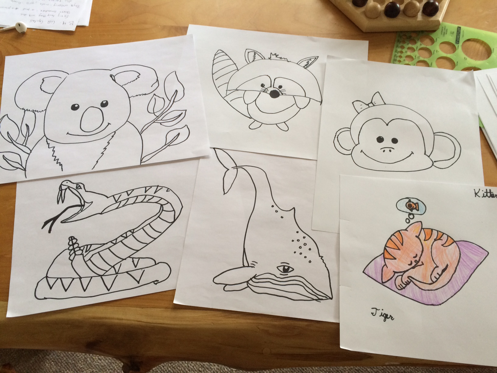 We have been drawing a lot of animals. It’s really fun. I drew a raccoon, koala, monkey, kitten, rattle snake, and a whale.